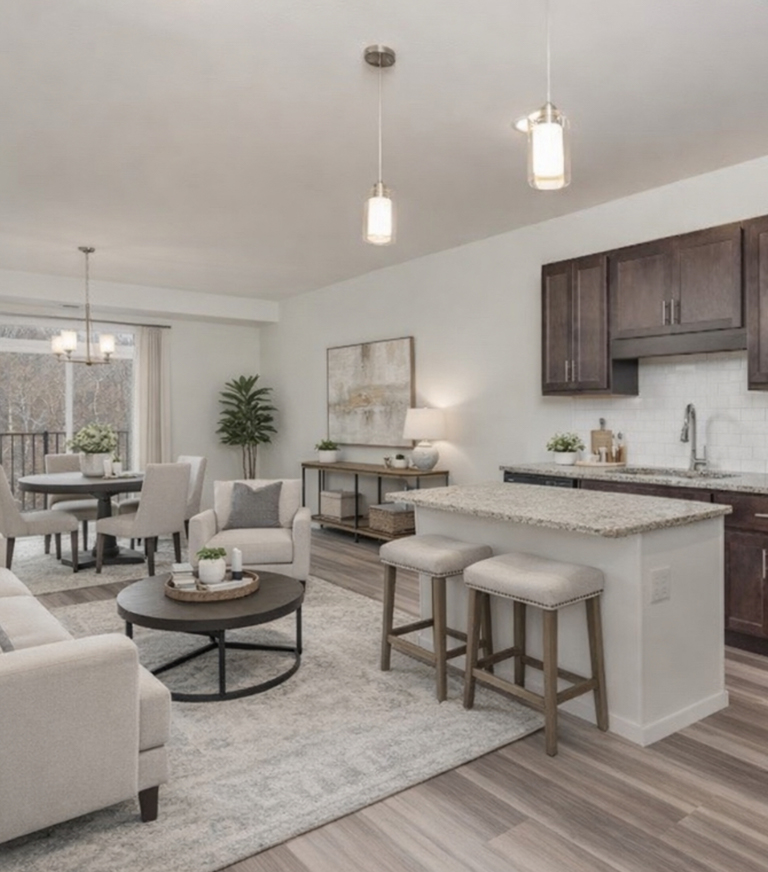 Our thoughtfully designed suites exude comfort and style, featuring 9’ ceilings, granite countertops, stainless steel appliances, and spacious layouts you’ll be proud to call home.